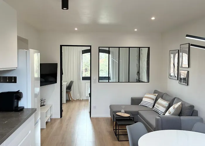 Apartmán Escapade Mediterraneenne Au Coeur De St-Raphael, umístěný 20 minut chůze od centra města Saint-Raphaël, nabízí parkoviště na místě. Apartmán nabízí terasu i pokoje s psacím stolem, přístrojem na přípravu kávy a čaje, TV s plochou obrazovkou se satelitními kanály.